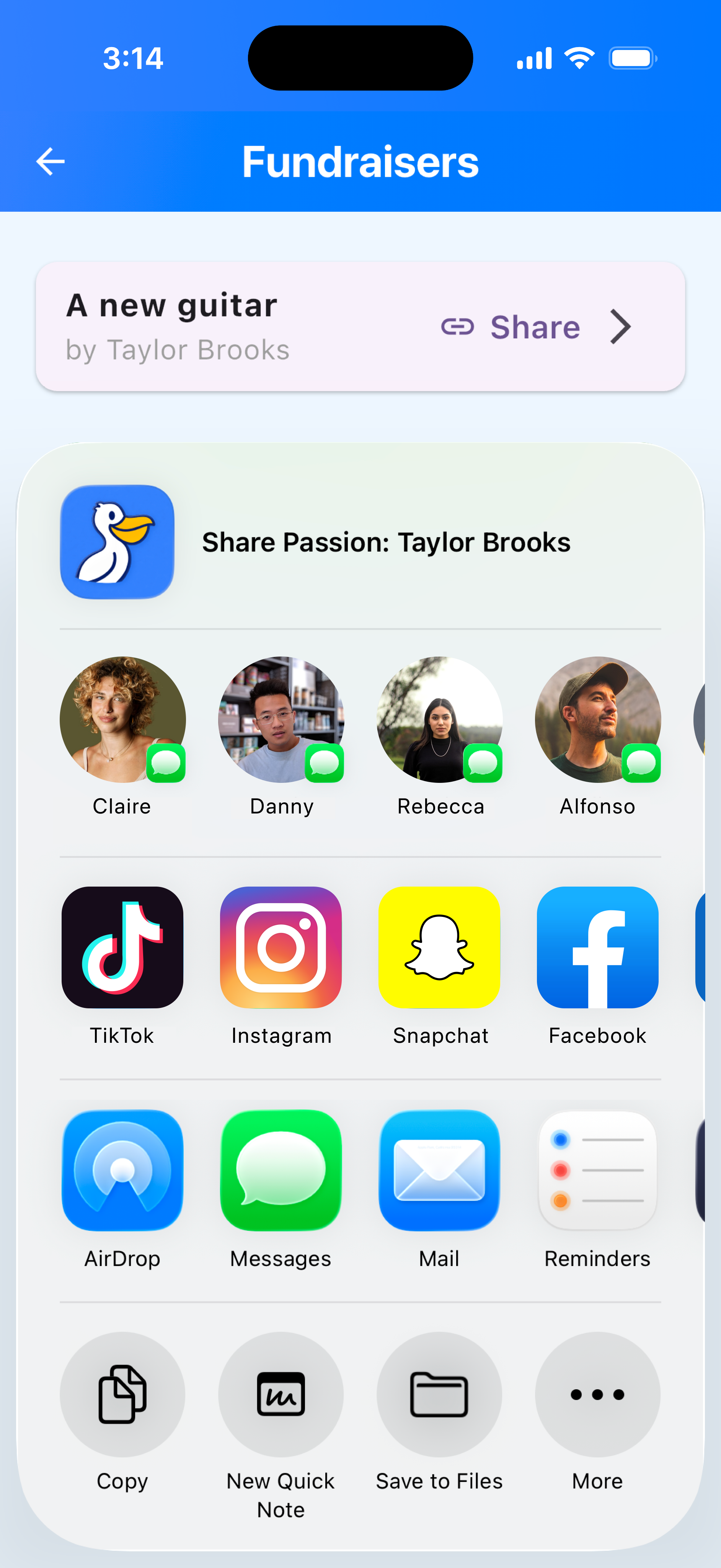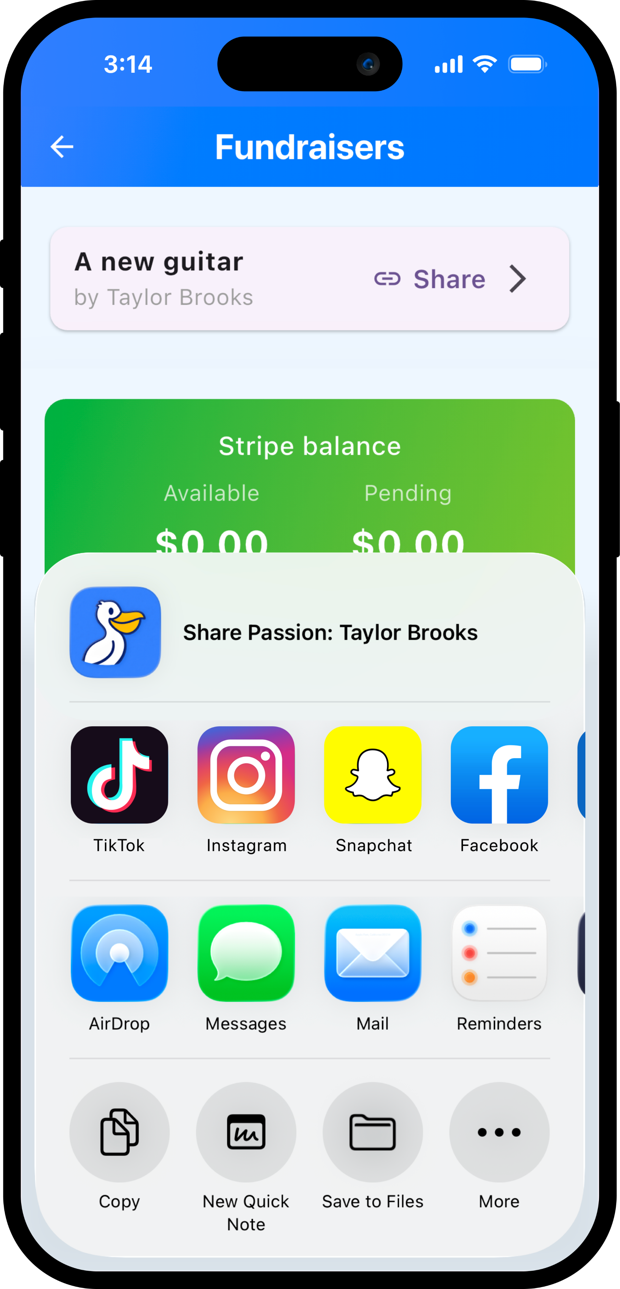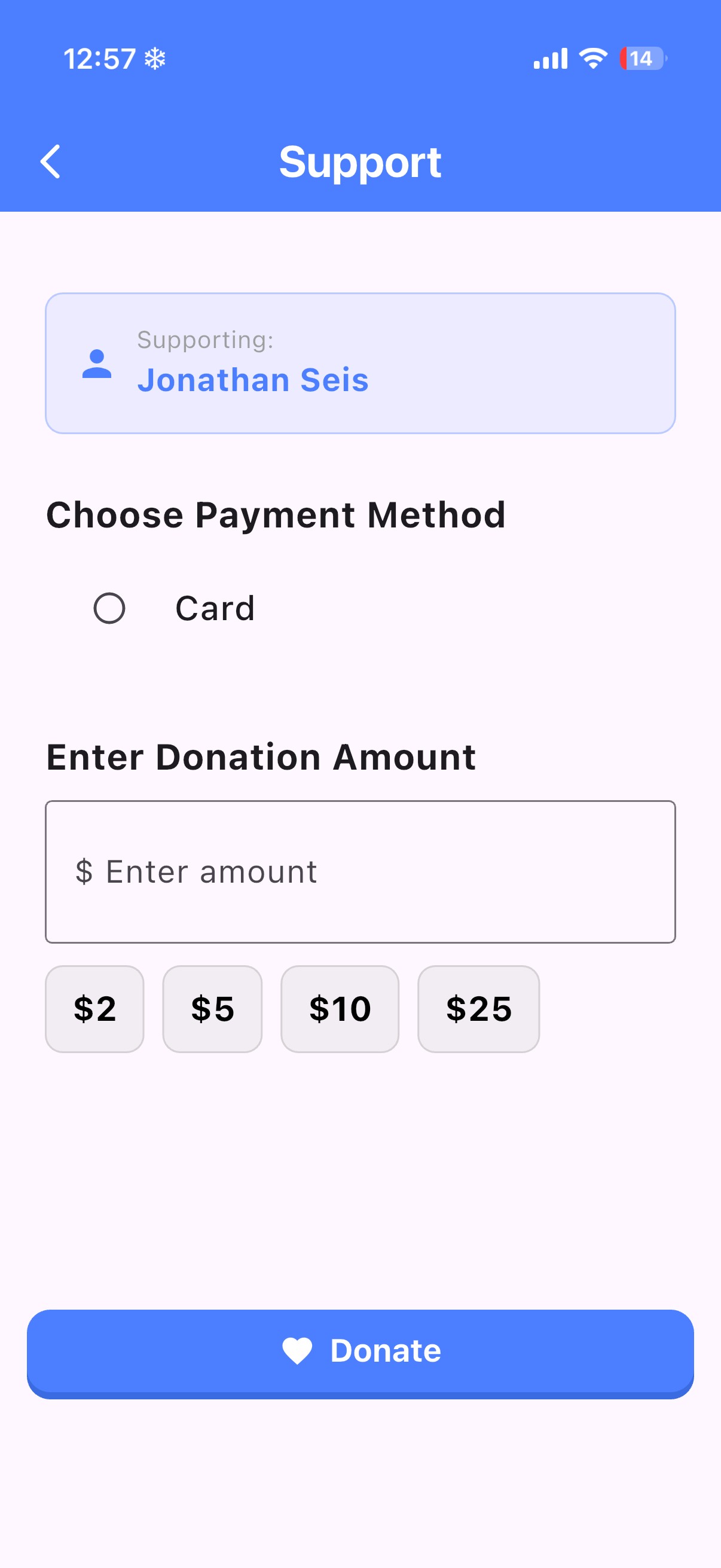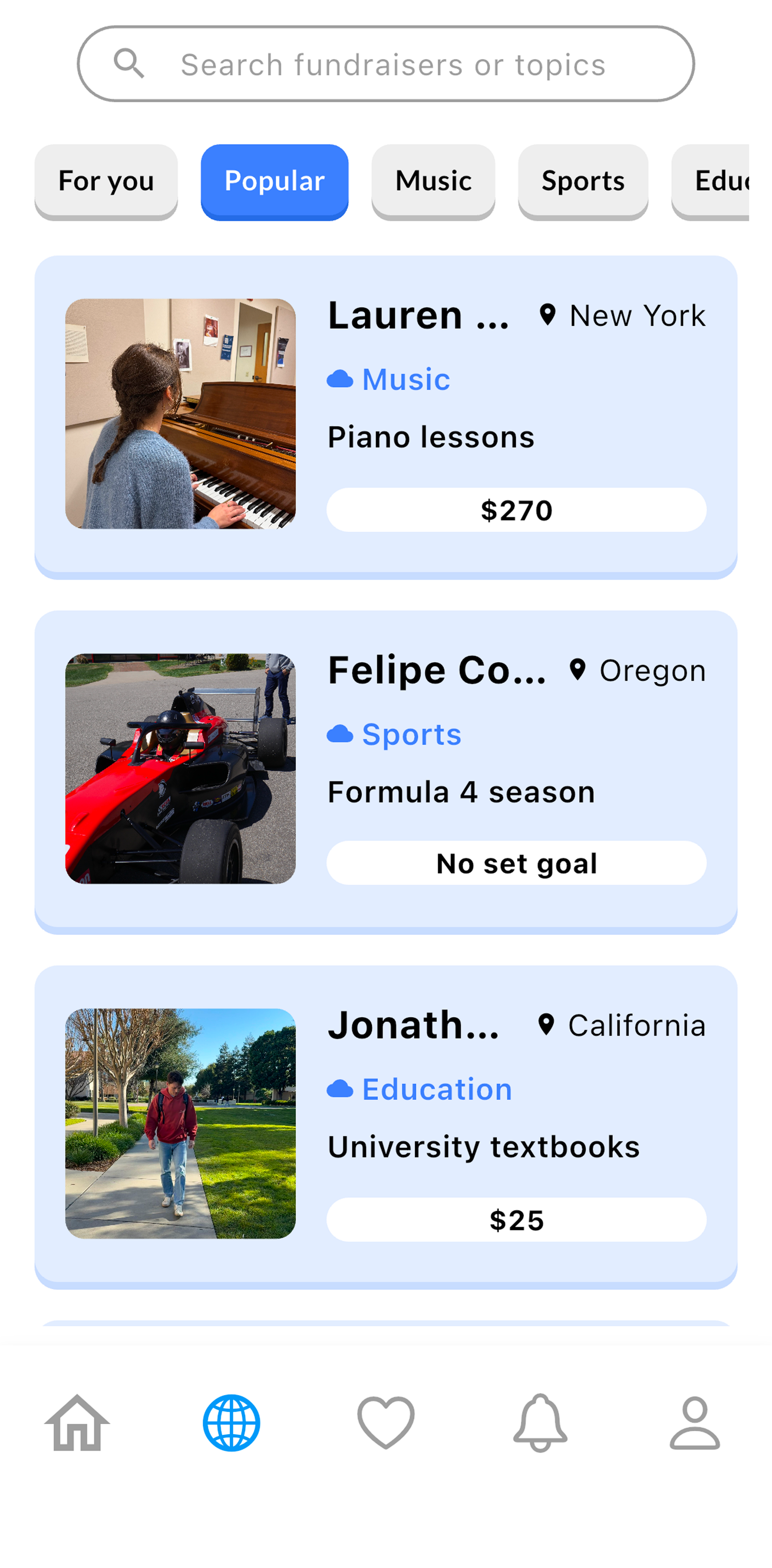 Create your fundraiser, share your link, and receive support from the people who believe in you.